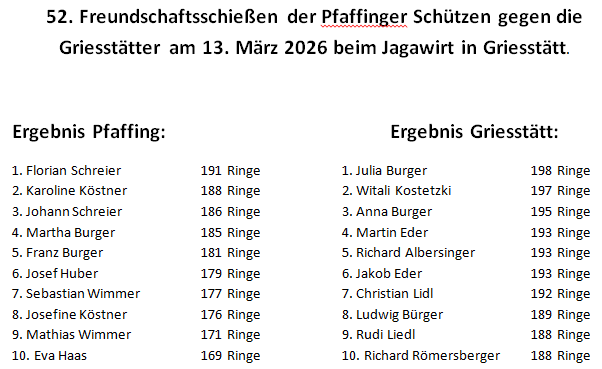 Es siegten die Griesstätter Schützen mit 1927 Ringen : 1803 Ringen gegen Pfaffing.